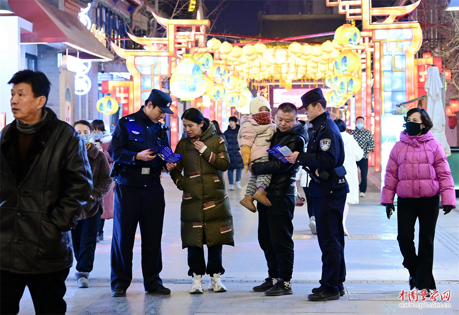 欢腾的人流中,一抹抹流动的“藏蓝”身影,守护着市民游客热闹游玩、平安跨年。